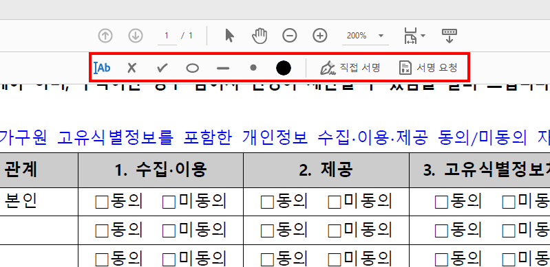 8)채우기 및 서명의 도구 모음을 확인할수있다.