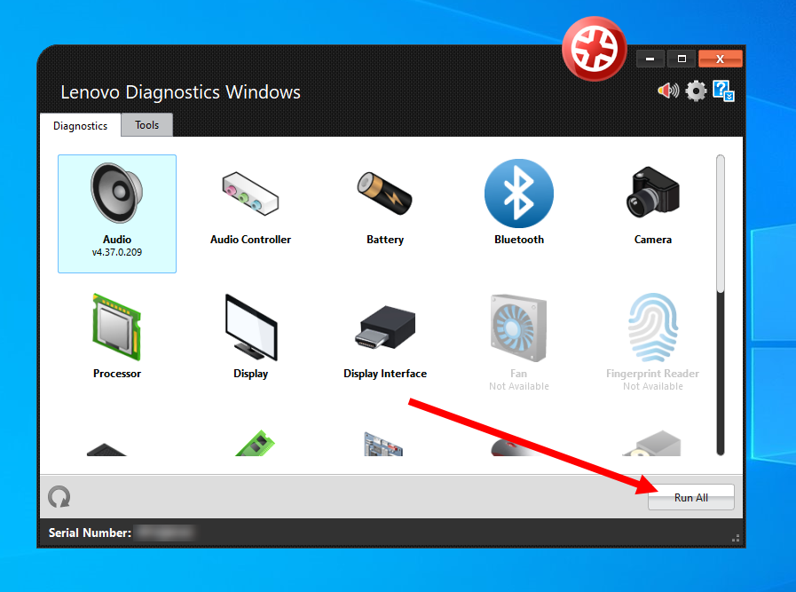 5)모든 장치에 대한 진단을 진행하려면 run all을 클릭한다.