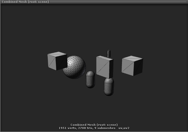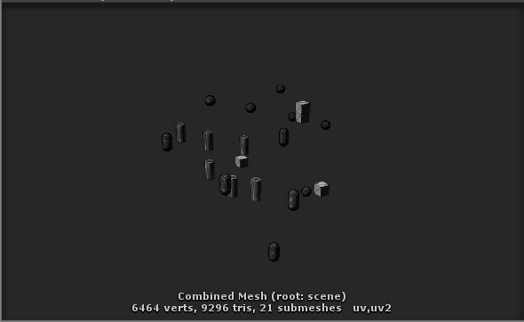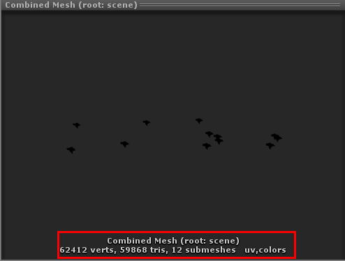 10)결합한 메시의 버텍스 개수가 64k를 초과하면 추가적인 combined mesh를 생성한다(combined mesh, combined mesh2, combined mesh3, combined mesh4.combined mesh5)