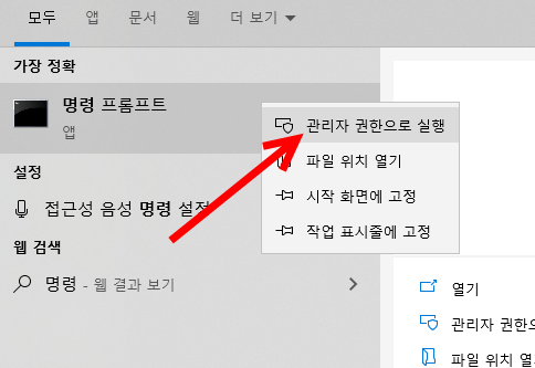 1)명령 프롬프트를 관리자 권한으로 실행한다.