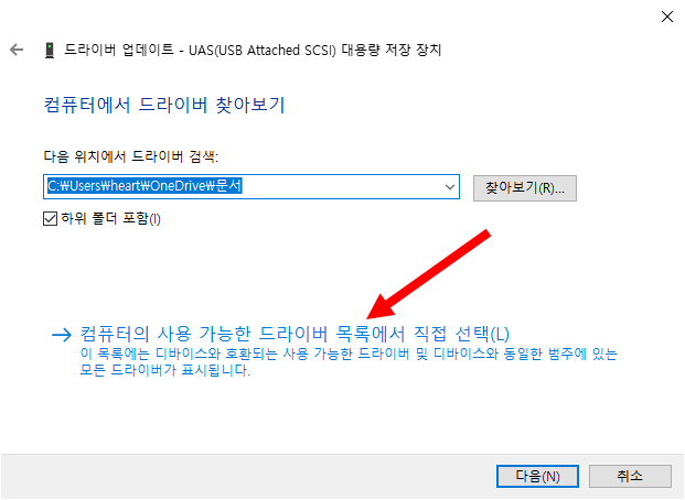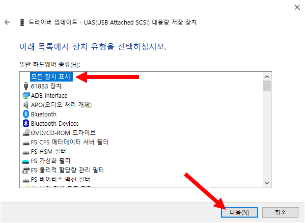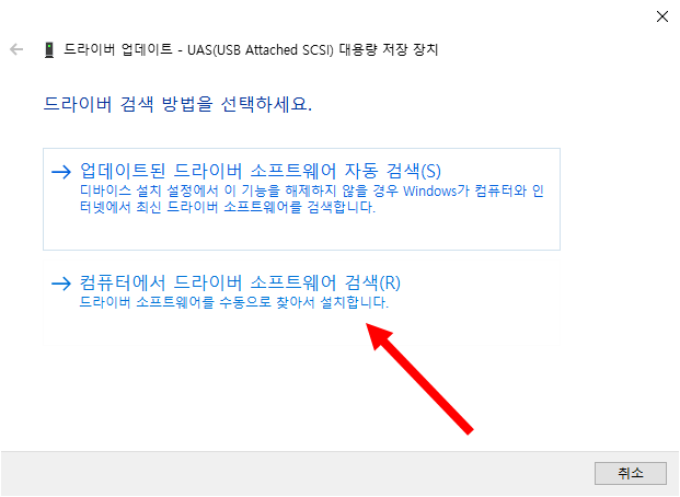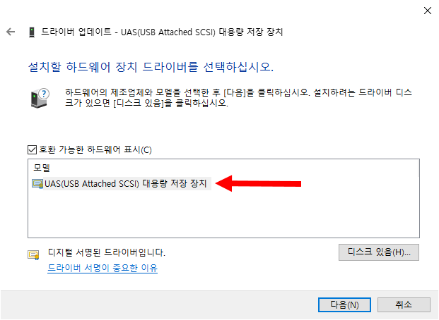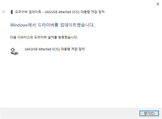 UAS(USB Attached SCSI)대용량 저장장치 드라이버 업데이트하기