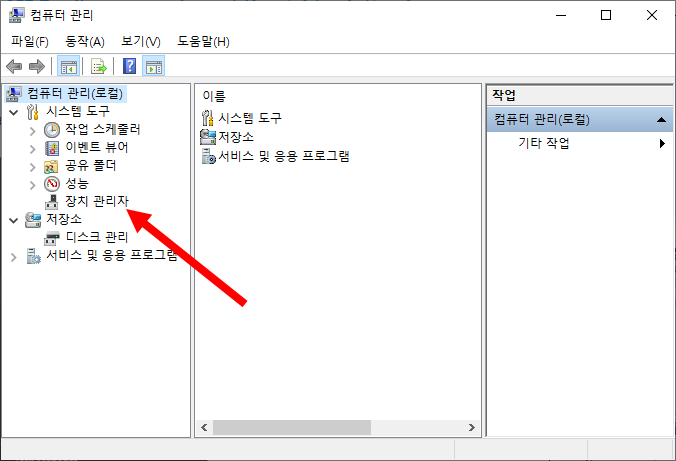 1)컴퓨터 관리에서 장치관리자로 이동한다.
