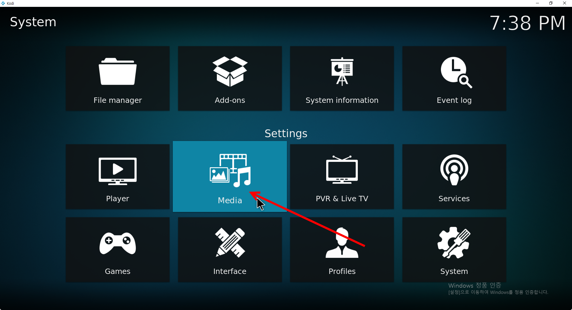 6)미디어 설정으로 이동한다(mdedia)