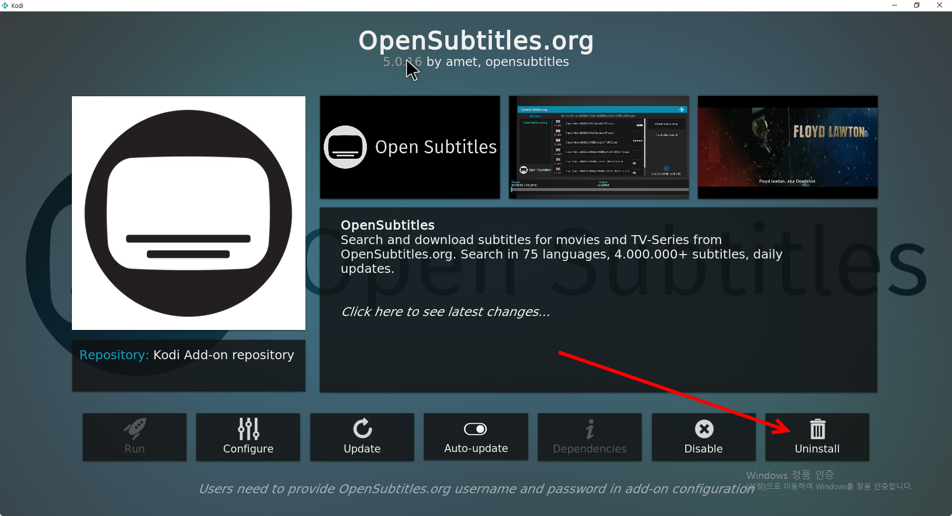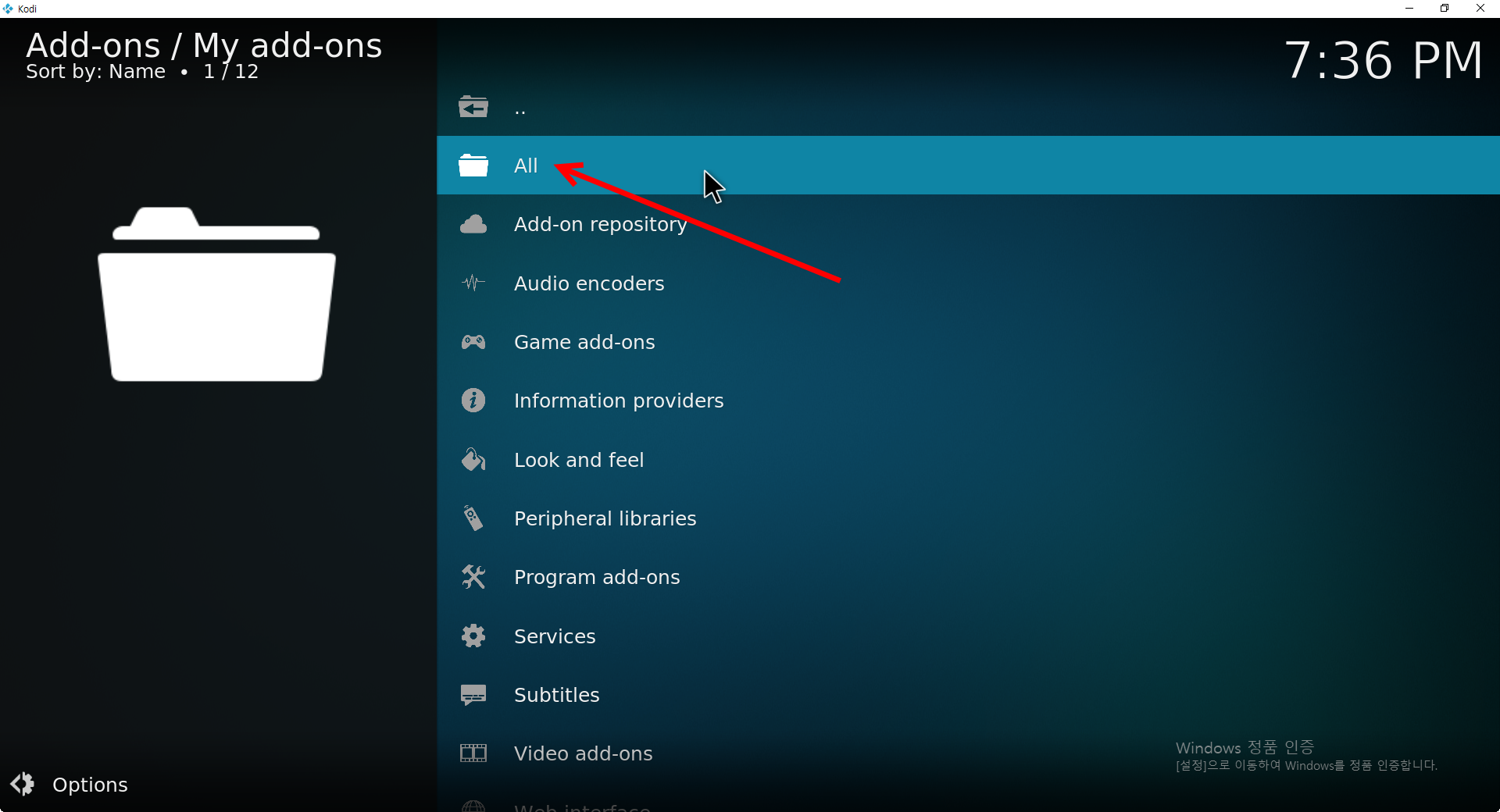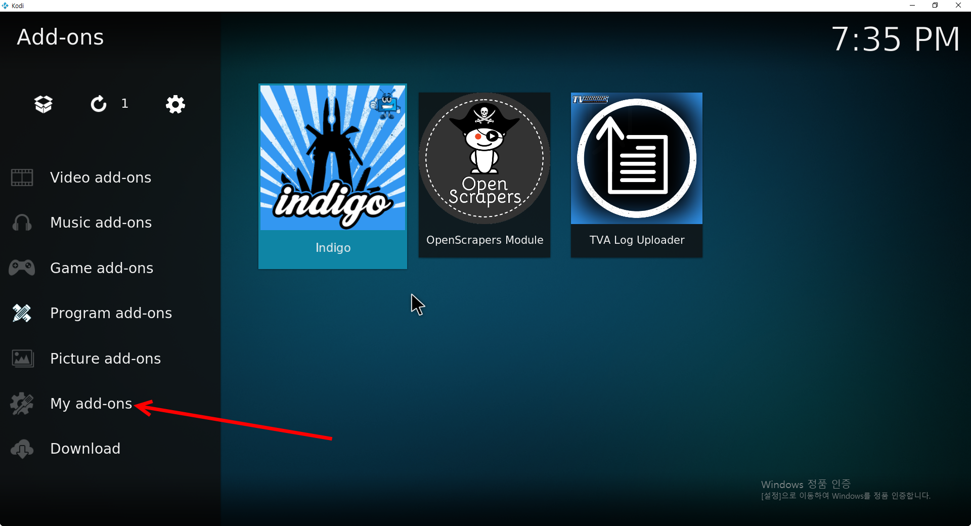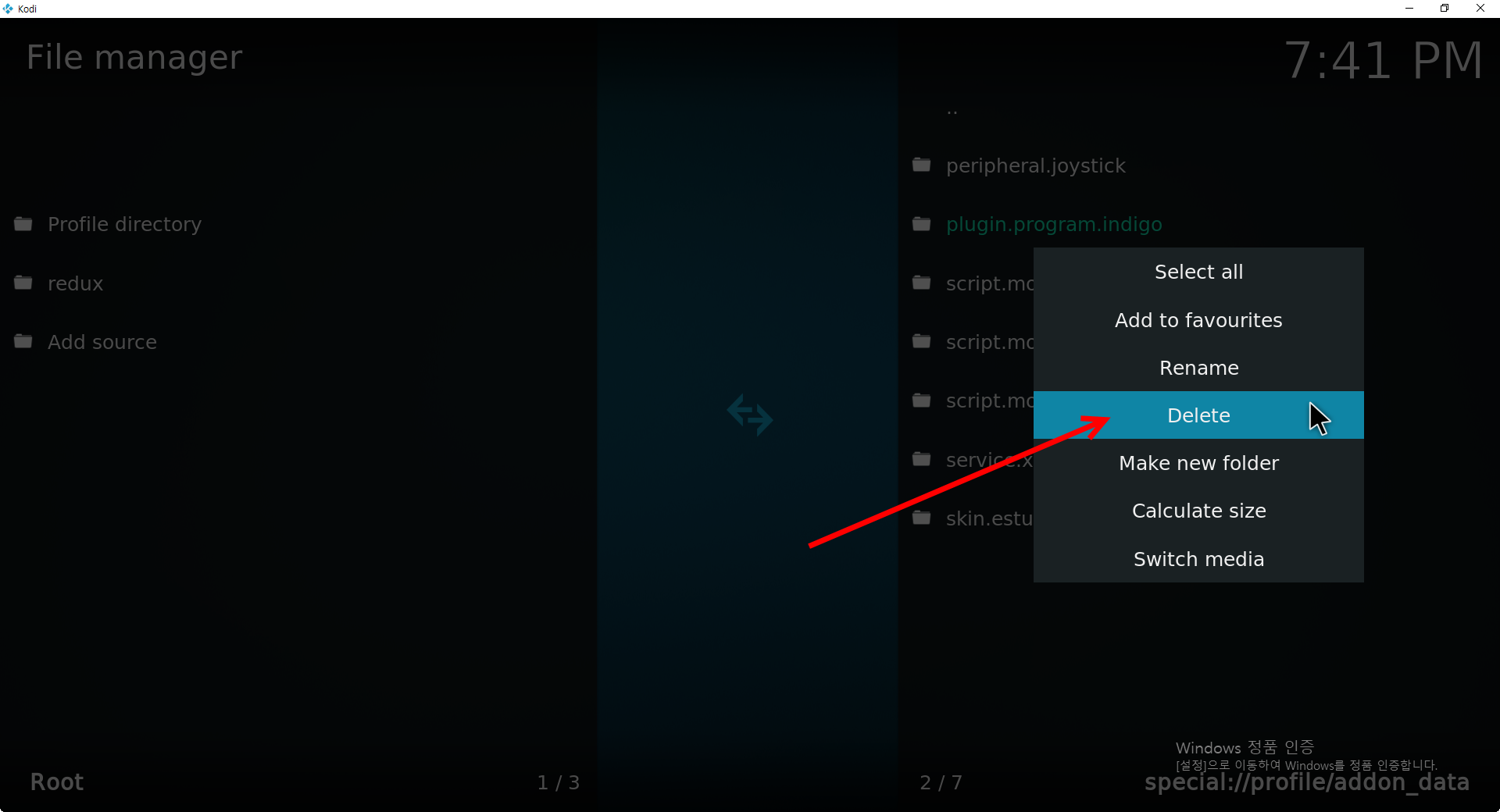 코디(KODI)에서 애드온(Add-on) 제거하기