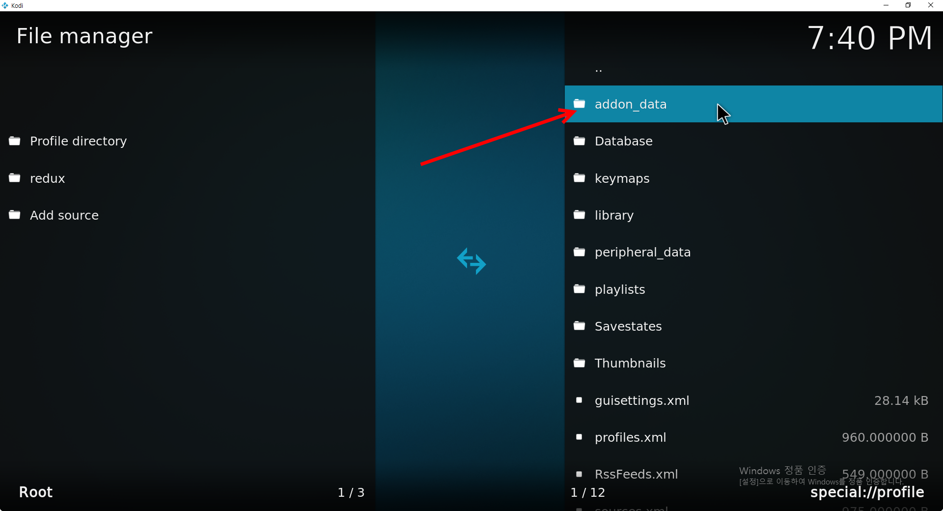 9)profile directory의 addon_data으로 이동한다.