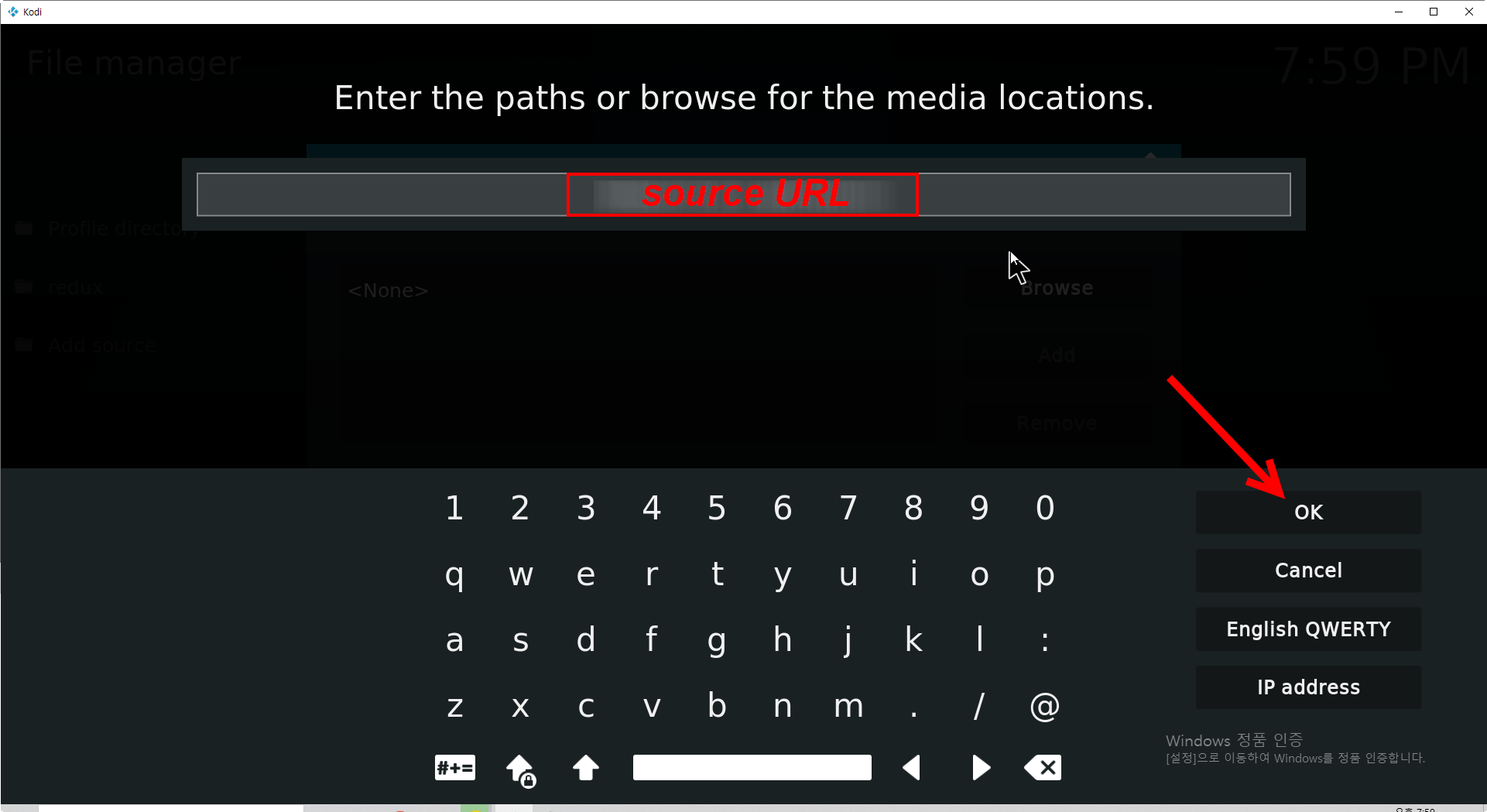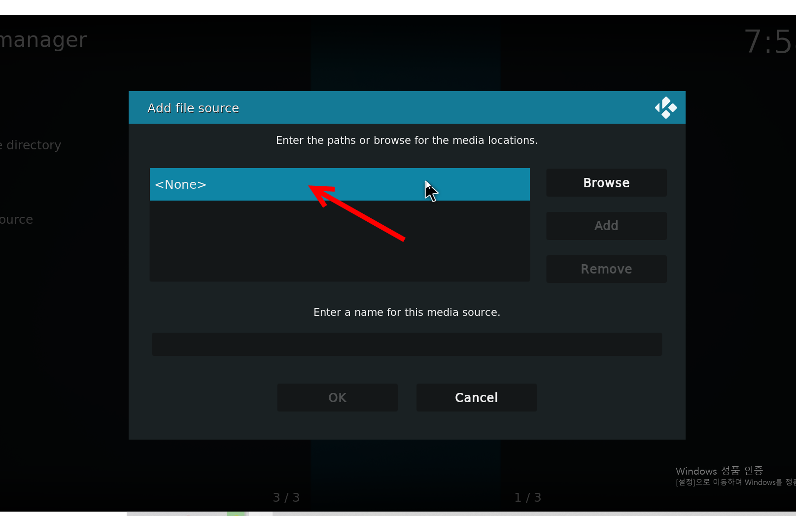 5)<none>을 클릭하고 애드온의 레포지토리 URL을 입력한다(addon repository url)