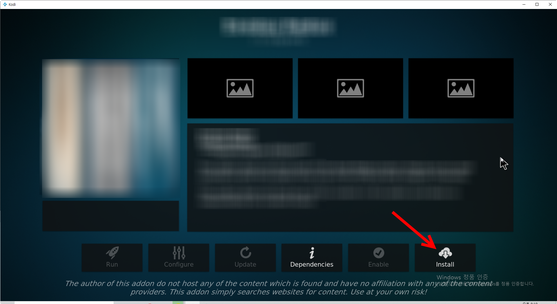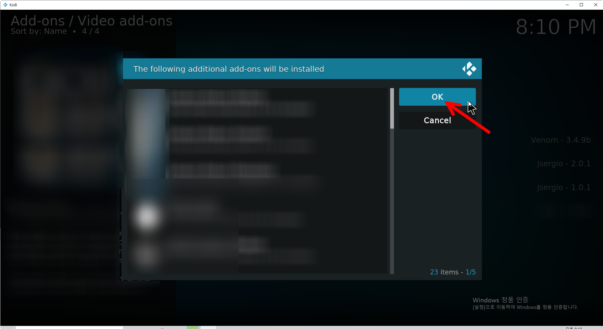 17)install을 클릭하면 코디에 애드온을 설치한다.