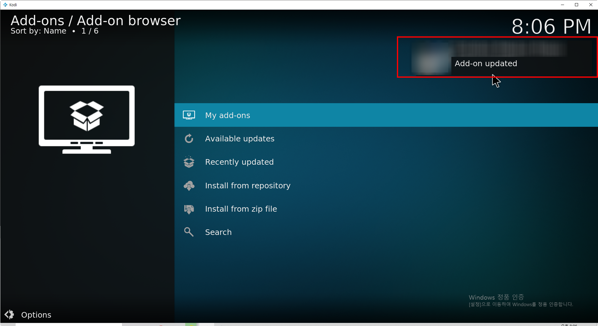 12)코디에 애드온이 업데이트된것을 확인할수있다.