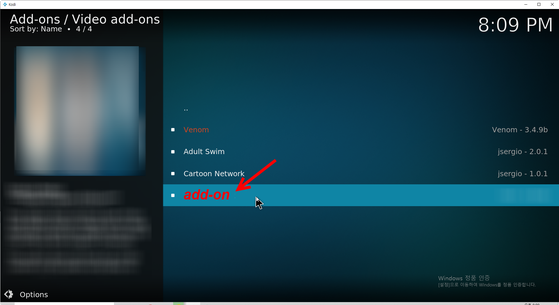 15)비디오 애드온 및 기타 유형의 애드온으로 이동한다.