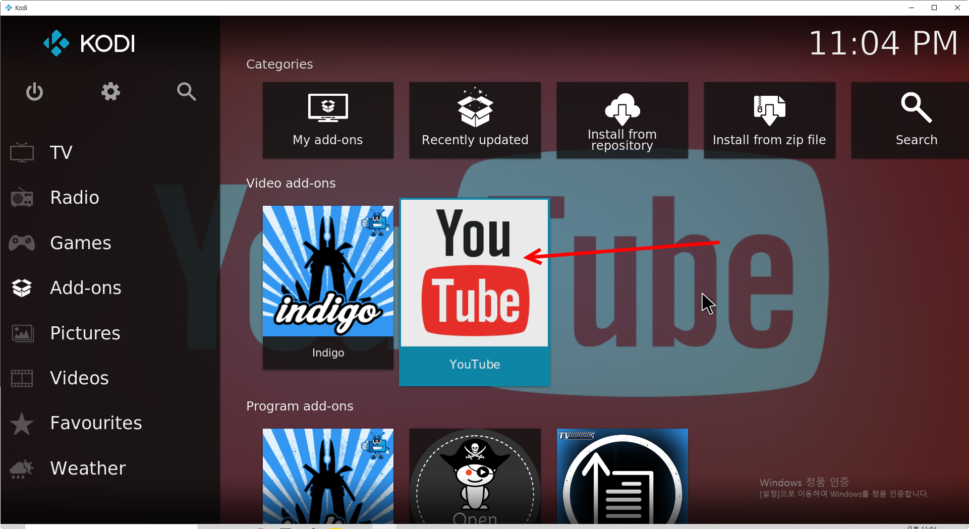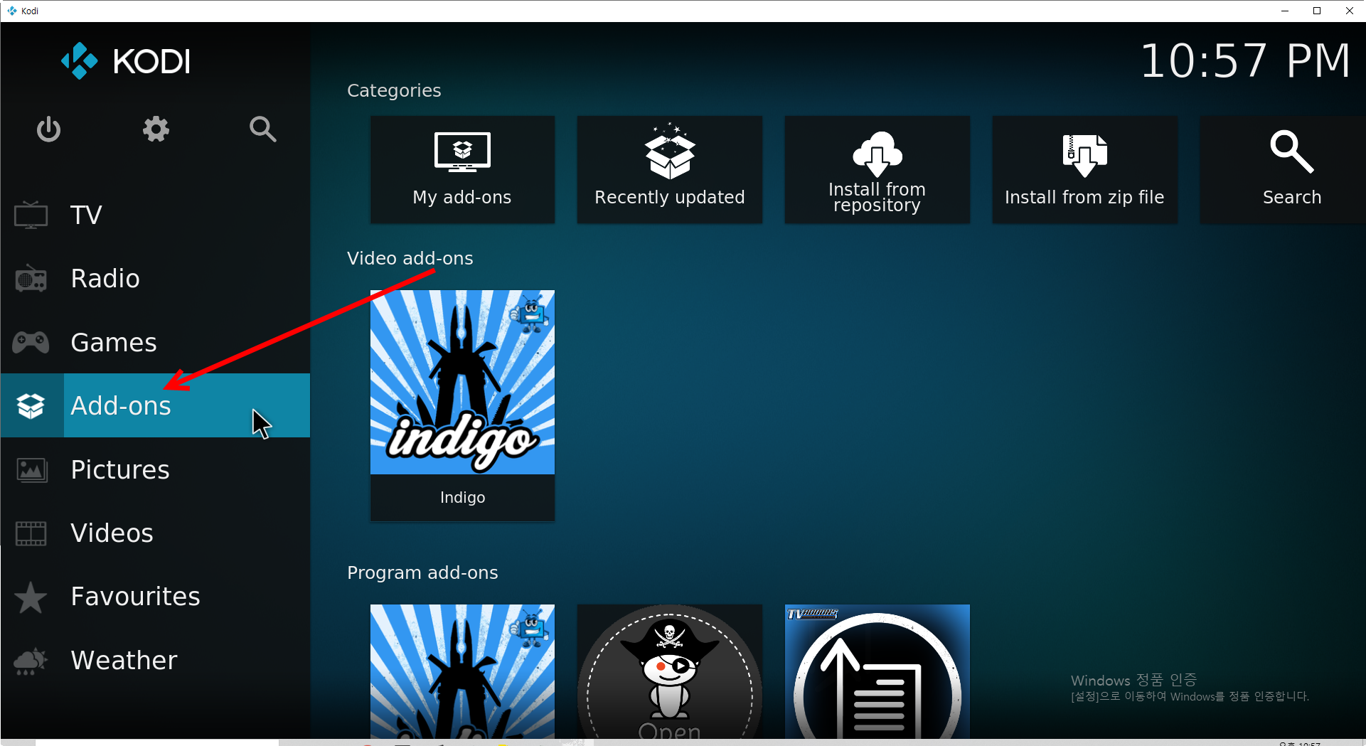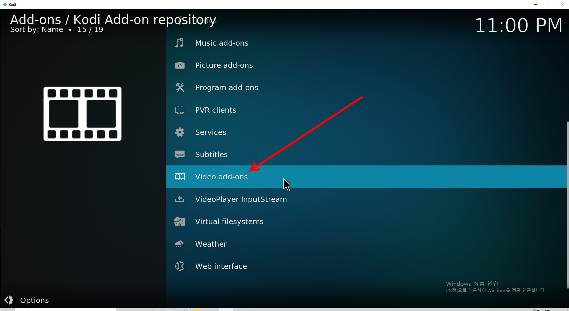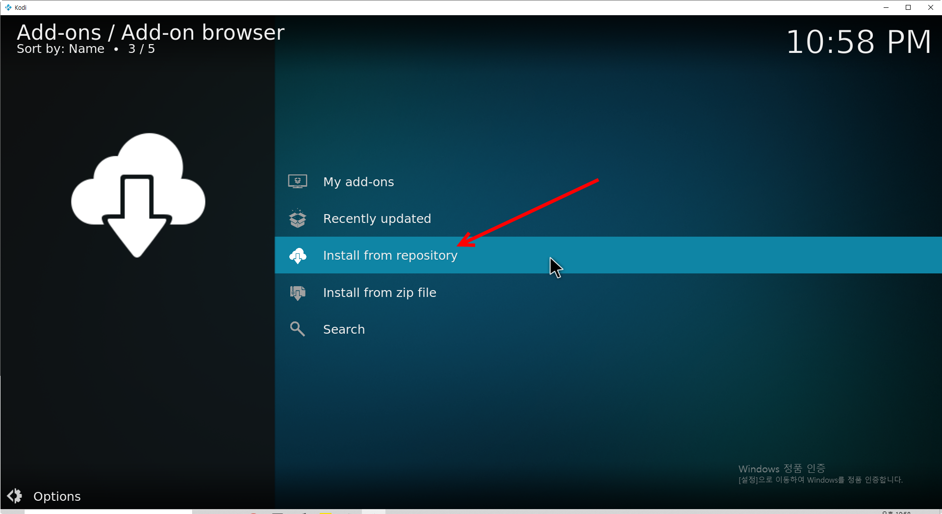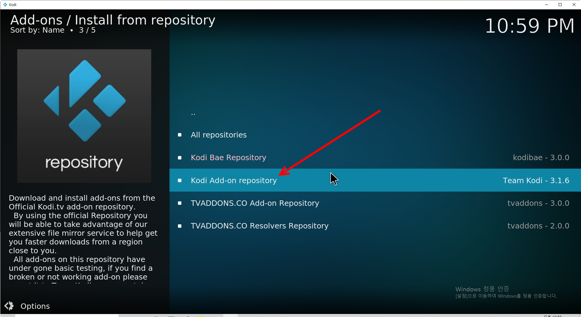 코디(kodi)에서 공식 애드온(official add-on) 설치하는 방법