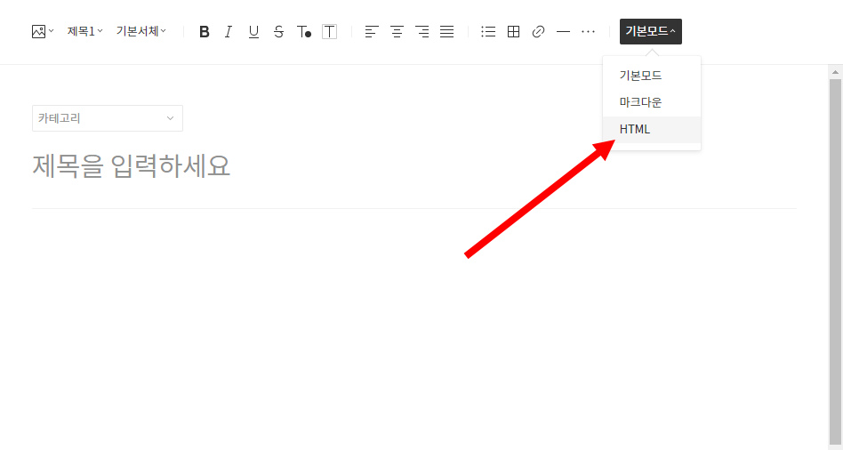 4)티스토리 글쓰기에서 기본모드를 html로 변경한다.