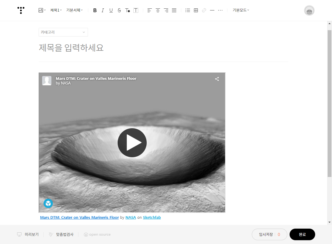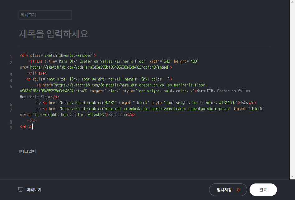 티스토리 글쓰기에서 sketchfab 3D뷰어 삽입하기