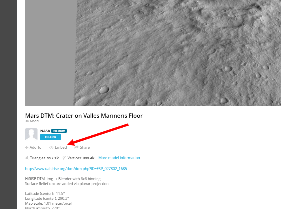2)3D 모델의 정보에서 embed로 이동한다.