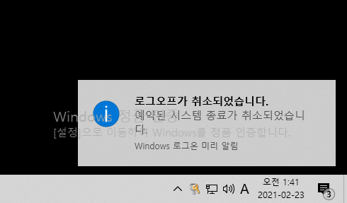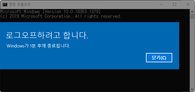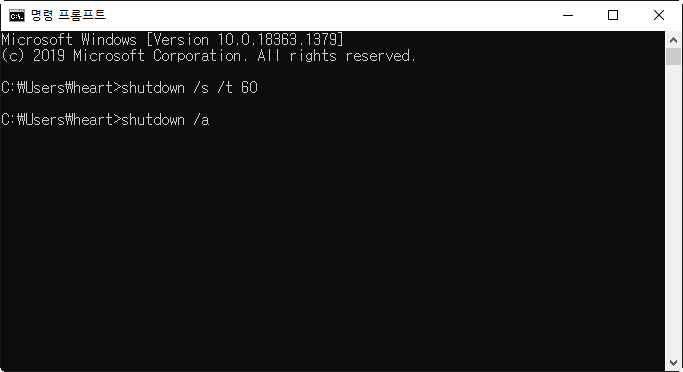 3)시스템 종료를 중단하려면 shutdown /a 를입력한다.