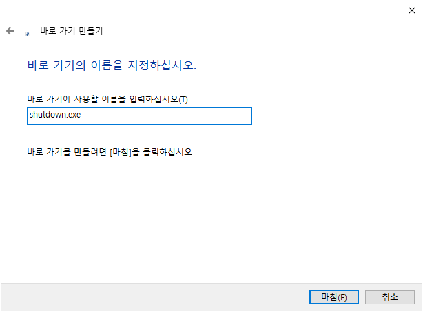 7)shutdown.exe가 입력되있는것을 확인하고 마침을 클릭한다.