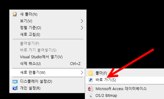 5)새로 만들기에서 바로 가기를 선택한다.