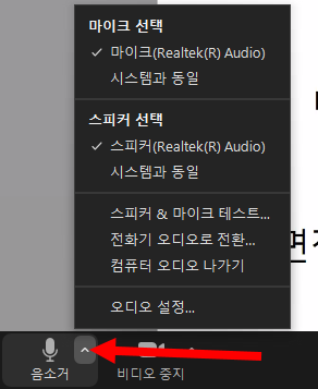 10)마이크 및 스피커를 설정하려면 좌측 하단에 표시한곳을 클릭한다.