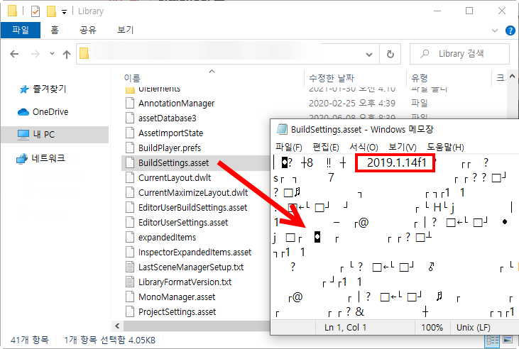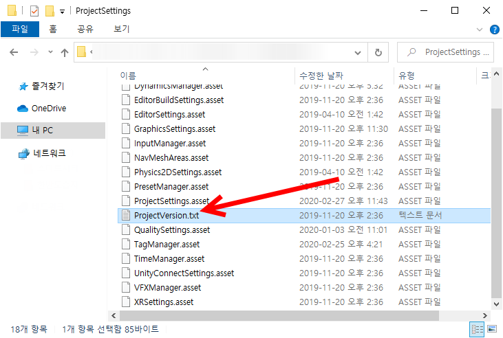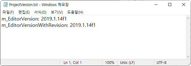 2)projectVersion.txt 파일을 열기하면 확인할수있다.