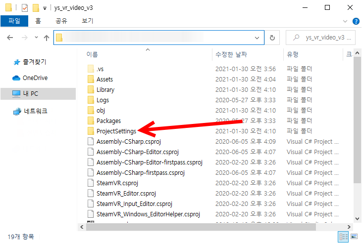 1)프로젝트에서 projectSettings 폴더로 이동한다.