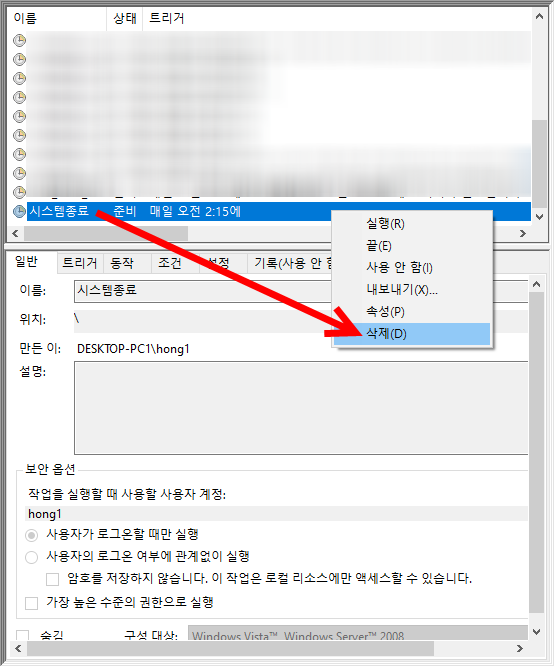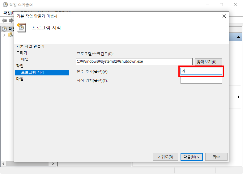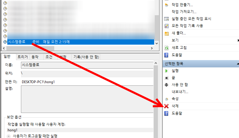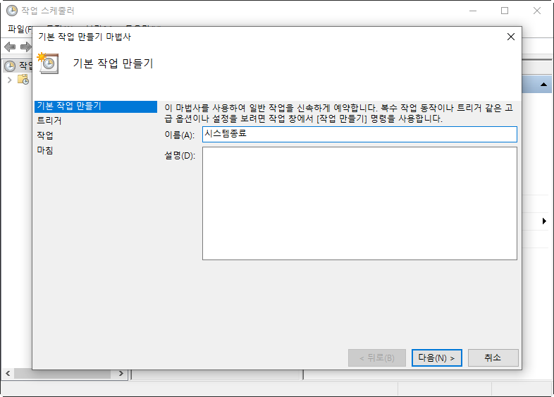 윈도우10 작업 스케줄러에서 시스템 종료시간 설정하기