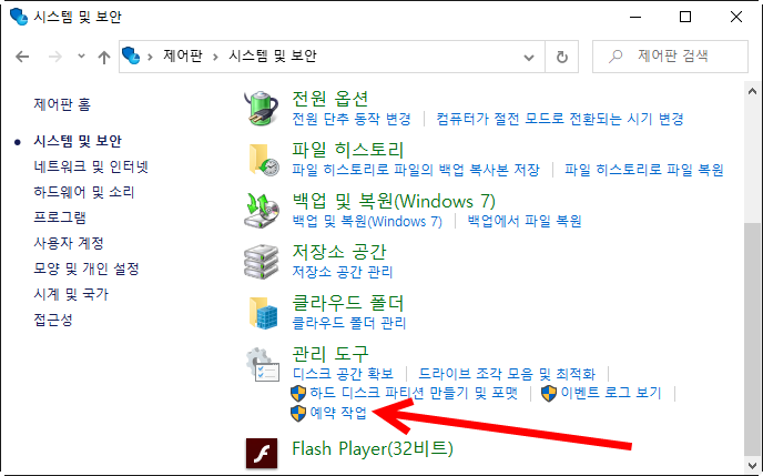 1)제어판에서 관리 도구의 예약 작업으로 이동한다.