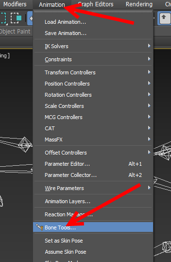 8)상단의 animation 메뉴에서 bone tools로 이동한다.