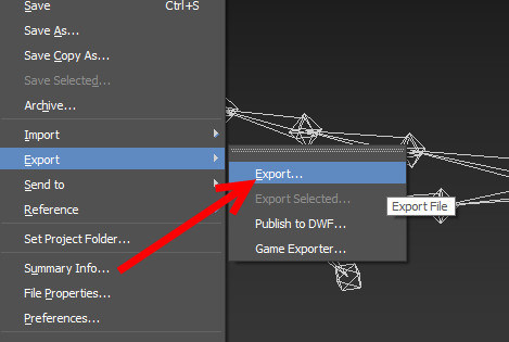 10)애니메이션을 내보내기하려면 상단의 file 메뉴에서 export로 이동한다.