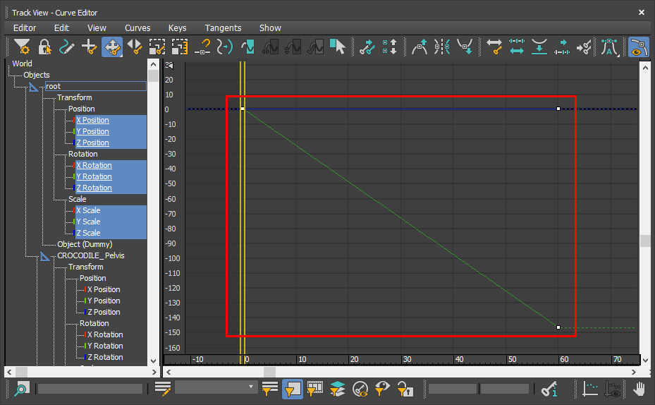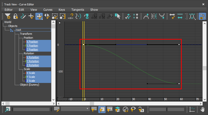 4)root 오브젝트의 곡선 그래프의 포인트를 선택한다.