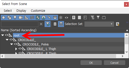 1)캐릭터 애니메이션의 root 오브젝트를 선택한다.