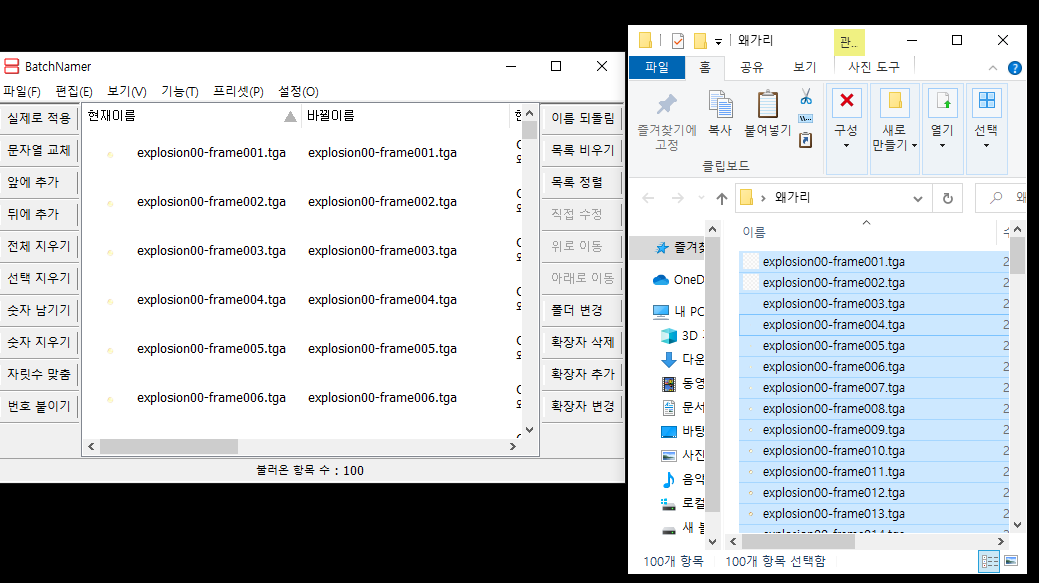 4)실제로 적용을 클릭하면 파일 및 폴더의 이름을 실제로 변경한다.