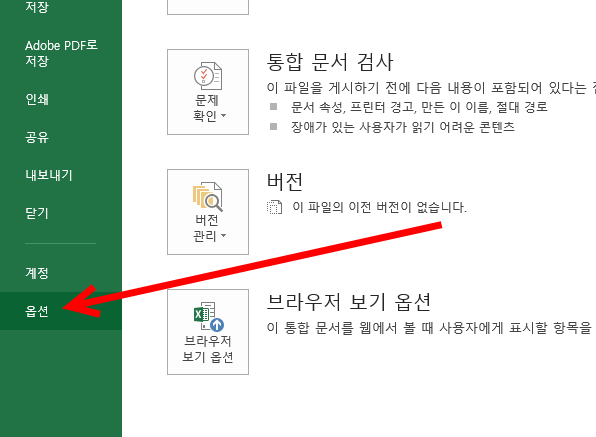 7)엑셀에서 상단 파일 메뉴의 옵션으로 이동한다.