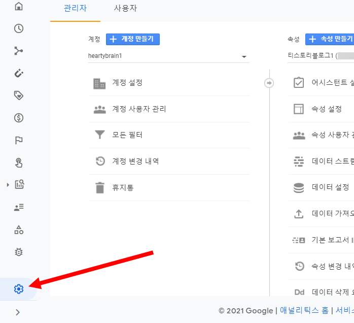 1)애널리틱스 관리자 화면에서 관리 메뉴로 이동한다.