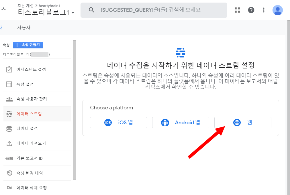 구글 애널리틱스에서 데이터 스트림 추가하기(블로그, 웹)