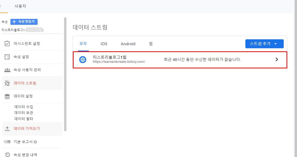 구글 애널리틱스(google analytics)에서 데이터 스트림 추가하기(블로그, 웹)