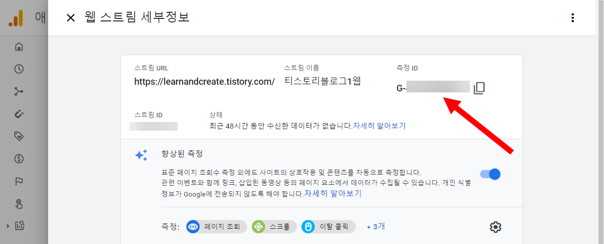 구글 애널리틱스에서 데이터 스트림의 추적 및 측정ID확인하기