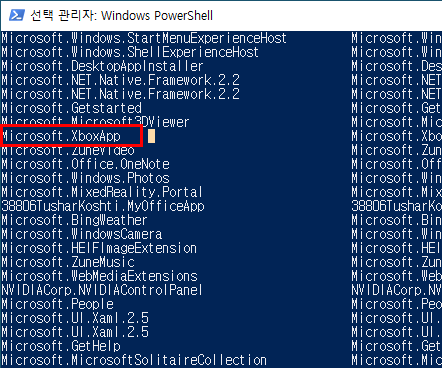 2)아래와 같이 입력하면 윈도우 사용자 프로필에 설치된 앱 패키지 목록을 가져온다.