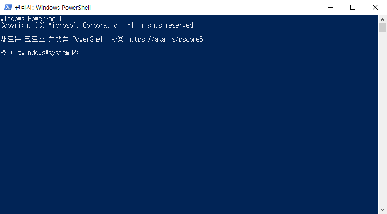 1)윈도우 파워셸을 관리자 권한으로 실행한다.