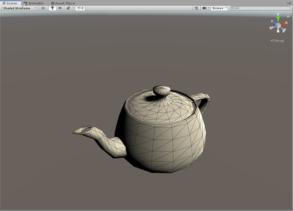 3)씬의 draw mode를 wireframe으로 설정하면 메시의 와이어프레임을 표시한다.
