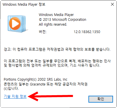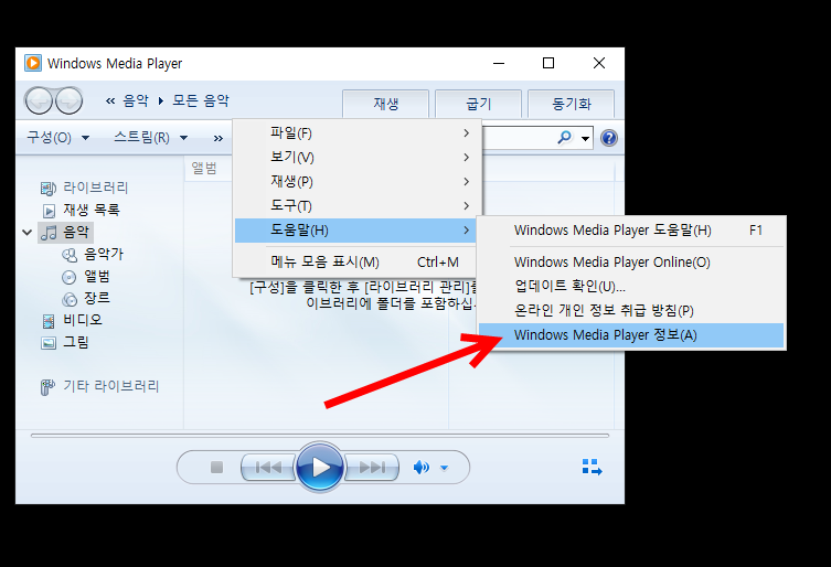 3)도움말의 windows media player 정보로 이동한다.