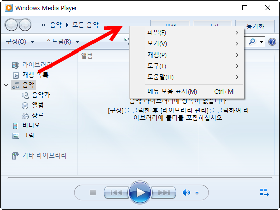 1)윈도우 미디어 플레이어(windows media player)를 실행한다.