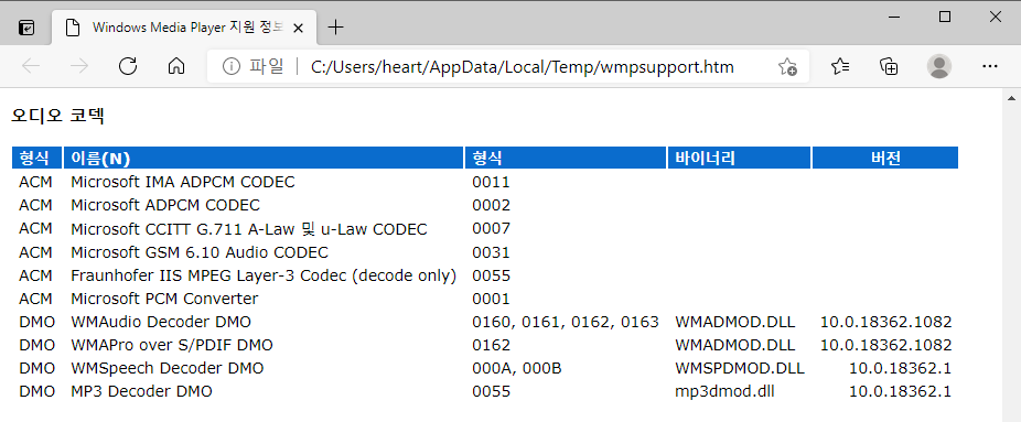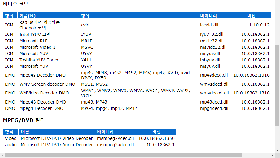 윈도우10에서 컴퓨터에 설치된 코덱 확인하기(비디오, 오디오)