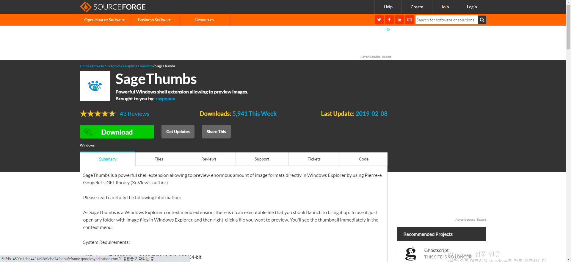 1)홈페이지에서 sagethumbs를 다운로드 및 설치한다.