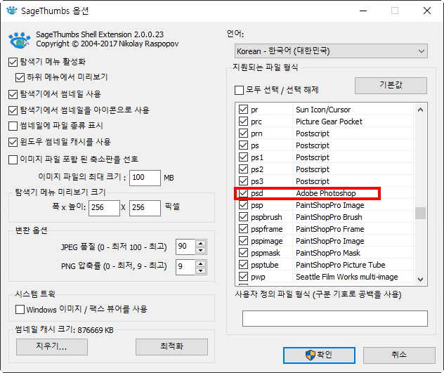 기본적으로 윈도우에서 지원하지않는 psd 및 기타 이미지 파일의 미리보기를 표시해주는 확장 프로그램이다.