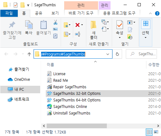 2)아래 위치에서 SageThumbs Options을 실행한다.