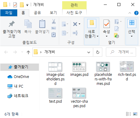 4)폴더에서 psd 및 기타 이미지 파일의 미리보기를 제공하는것을 확인할수있다.