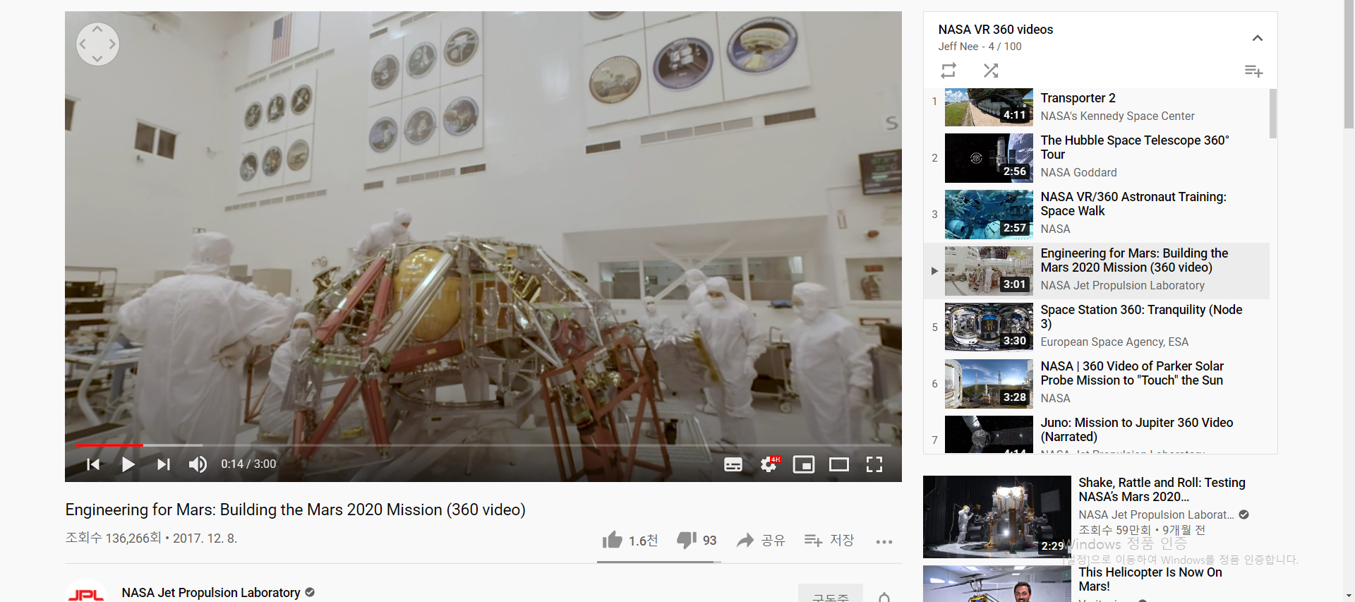 나사(NASA)에서 제공하는 VR 동영상 모음