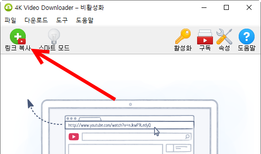 3)4K video downloader에서 링크복사를 클릭한다.