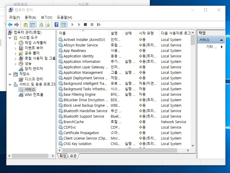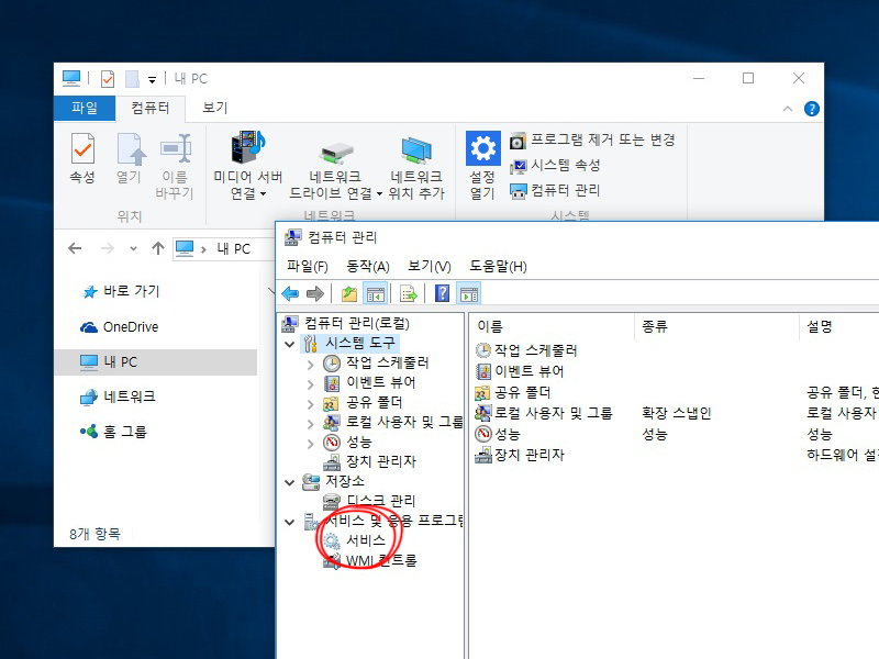2)컴퓨터 관리에서 서비스로 이동한다.