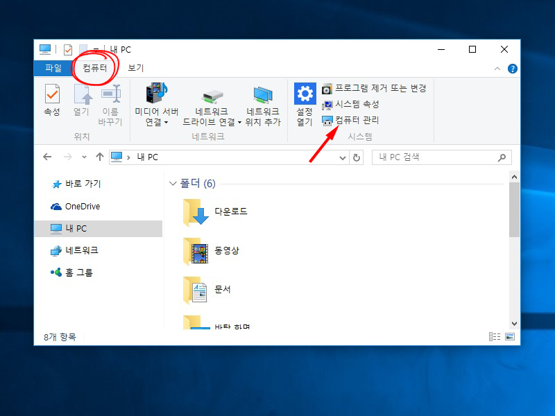 1)내PC에서 컴퓨터 관리로 이동한다.