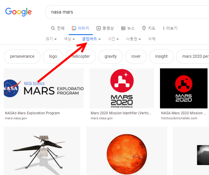 6)검색 결과에 표시할 이미지의 유형을 설정할수있다(모든유형, 클립아트, 선화, gif)